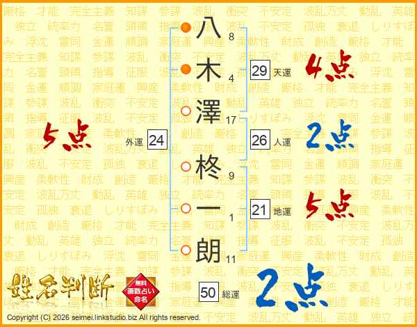 八木澤柊一朗さんの天運は29画の4点!