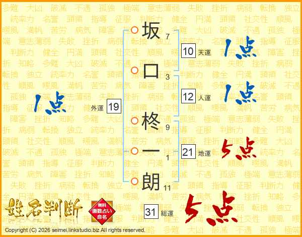 坂口柊一朗さんの総運は31画の5点!