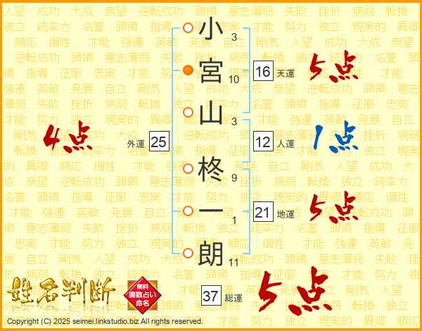 小宮山柊一朗さんの総運は37画の5点!