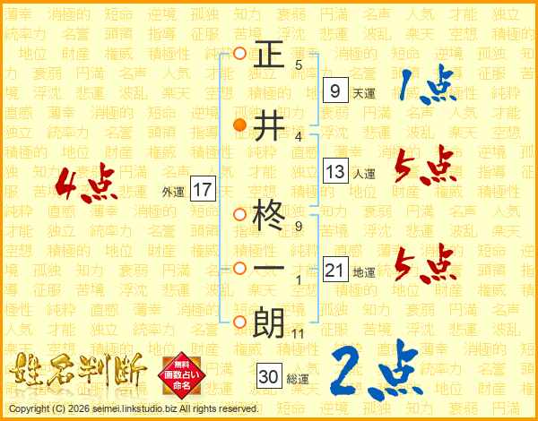 正井柊一朗さんの総運は30画の2点!
