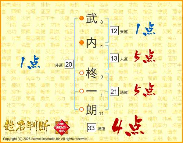 武内柊一朗さんの総運は33画の4点!