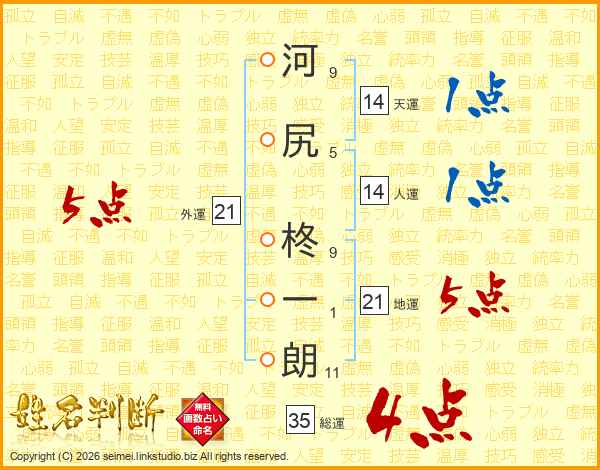 河尻柊一朗さんの外運は21画の5点!
