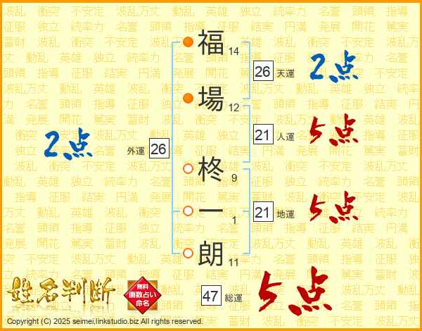 福場柊一朗さんの天運は26画の2点!