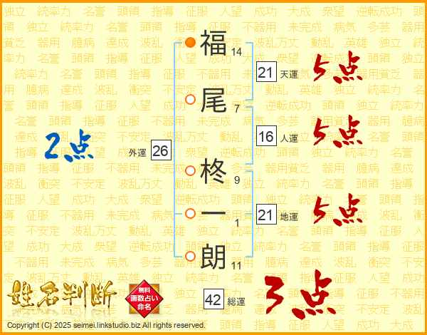 福尾柊一朗さんの天運は21画の5点!