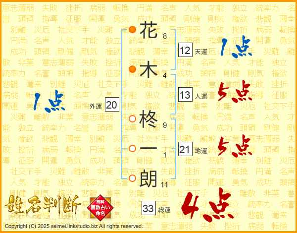 花木柊一朗さんの総運は33画の4点!