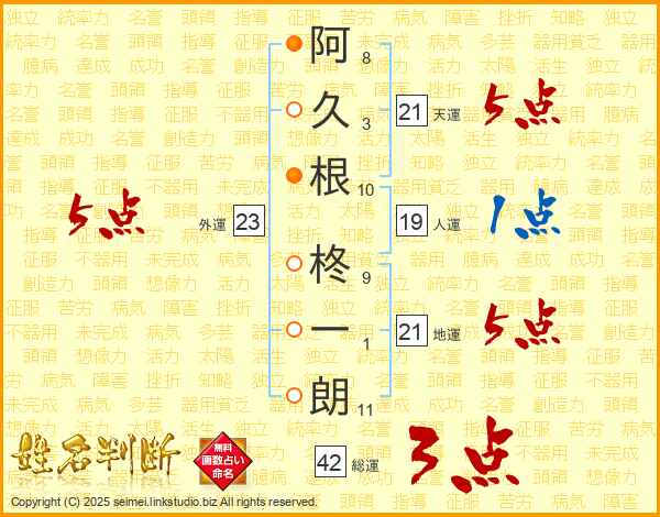 阿久根柊一朗さんの天運は21画の5点!