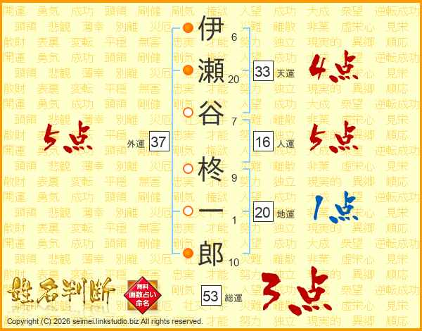 伊瀬谷柊一郎さんの外運は37画の5点!