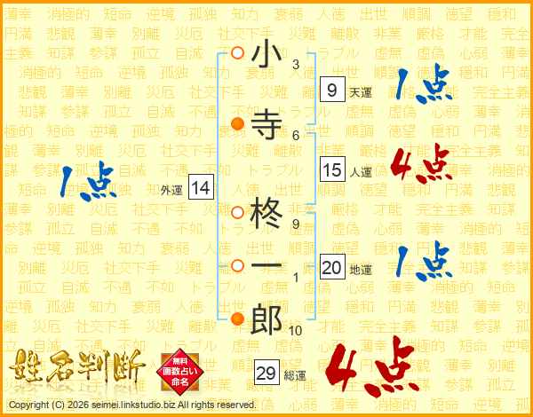 小寺柊一郎さんの総運は29画の4点!