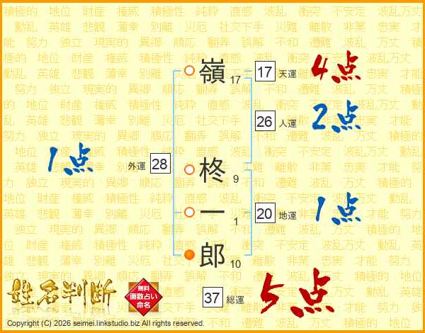 嶺柊一郎さんの総運は37画の5点!
