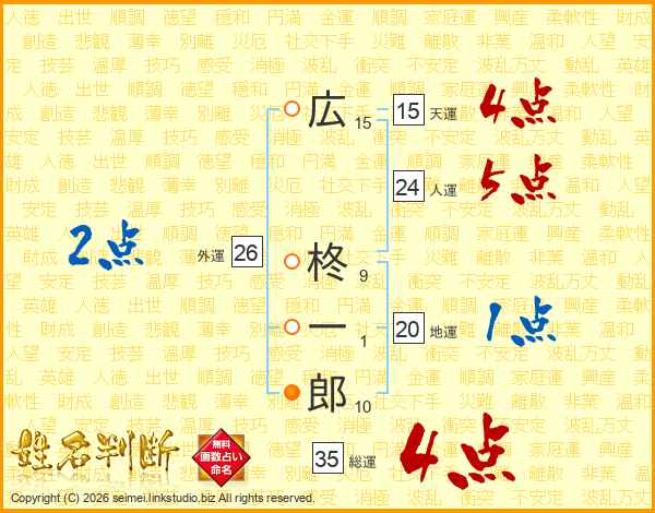 広柊一郎さんの総運は35画の4点!