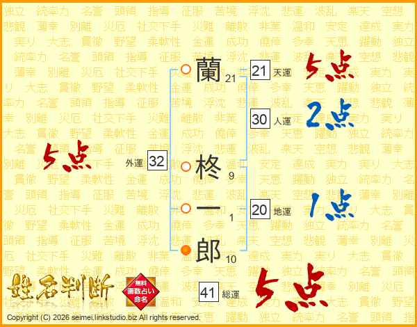 蘭柊一郎さんの外運は32画の5点!