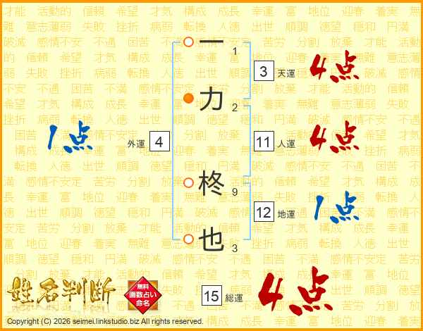 一力柊也さんの総運は15画の4点!