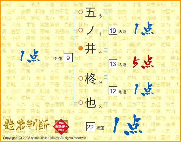 五ノ井柊也さんの総運は22画の1点!