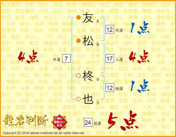 友松柊也さんの総運は24画の5点!