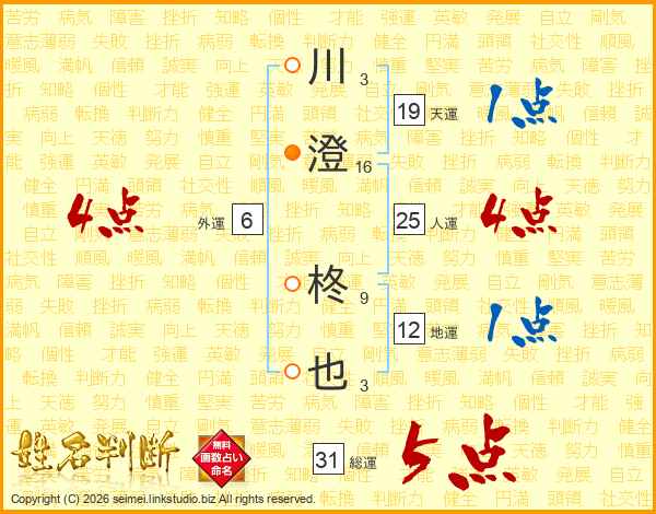 川澄柊也さんの総運は31画の5点!