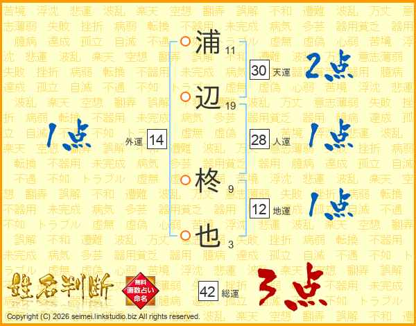 浦辺柊也さんの総運は42画の3点!