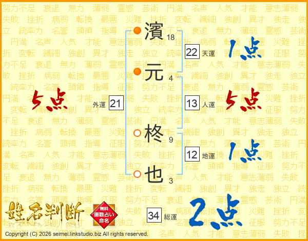 濱元柊也さんの外運は21画の5点!