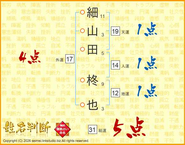 細山田柊也さんの総運は31画の5点!