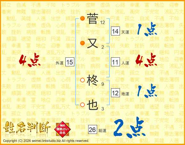 菅又柊也さんの総運は26画の2点!