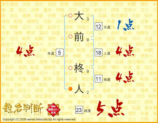 大前柊人さんの総運は23画の5点!