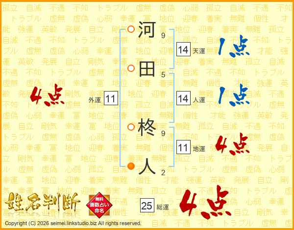 河田柊人さんの総運は25画の4点!
