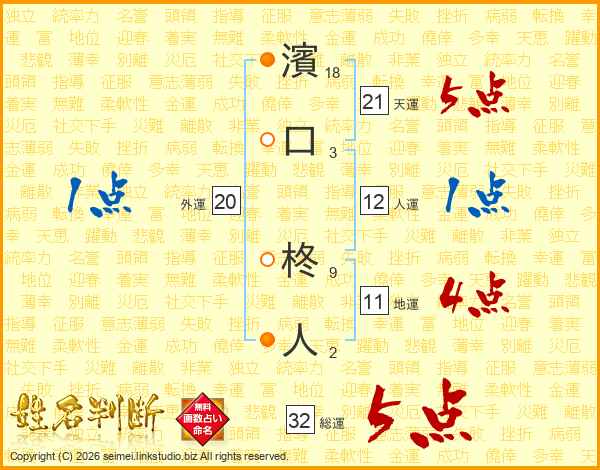 濱口柊人さんの天運は21画の5点!