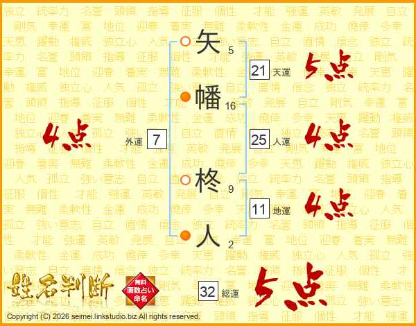 矢幡柊人さんの総運は32画の5点!