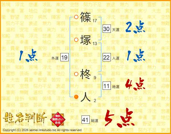 篠(17画)塚(13画) 柊(9画)人(2画)