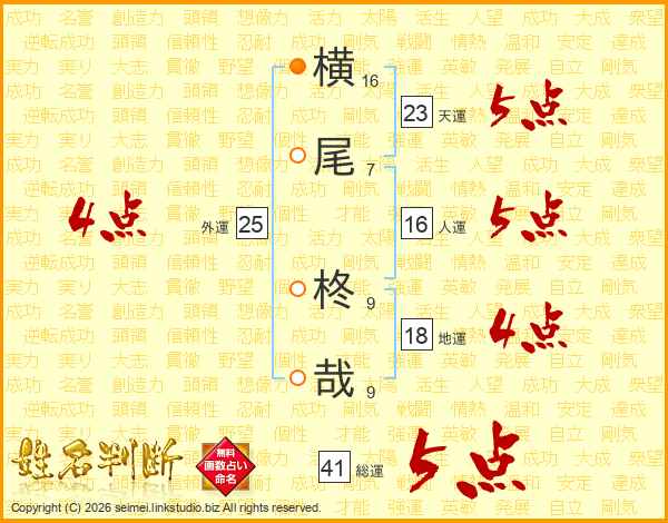 横尾柊哉さんの総運は41画の5点!
