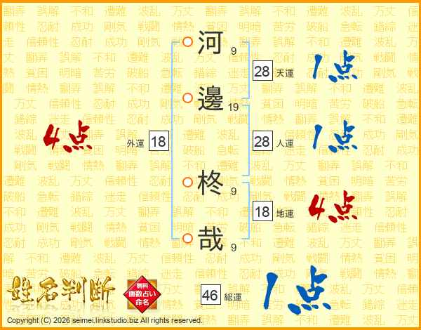 河邊柊哉さんの総運は46画の1点!