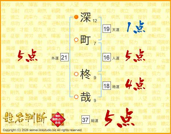 深町柊哉さんの総運は37画の5点!