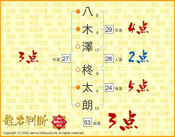 八木澤柊太朗さんの天運は29画の4点!
