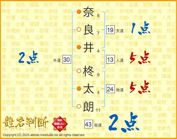 奈良井柊太朗さんの天運は19画の1点!