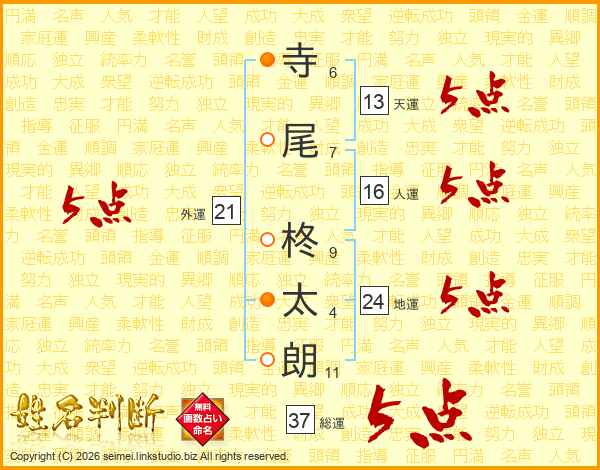 寺尾柊太朗さんの天運は13画の5点!