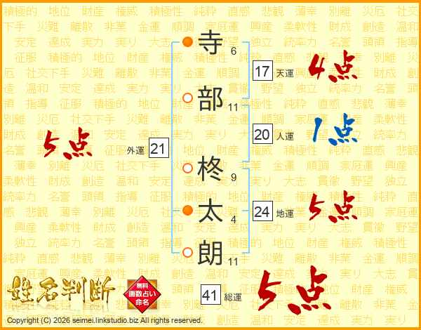 寺部柊太朗さんの地運は24画の5点!