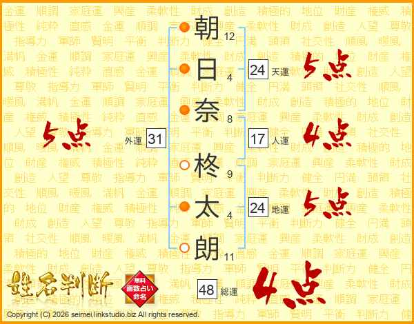 朝日奈柊太朗さんの総運は48画の4点!