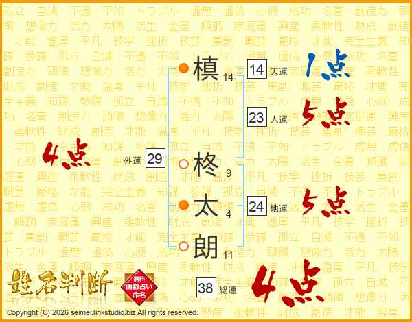 槙柊太朗さんの外運は29画の4点!