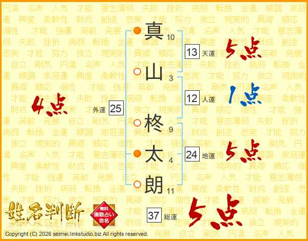 真山柊太朗さんの総運は37画の5点!