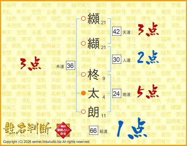 纐纈柊太朗さんの総運は66画の1点!