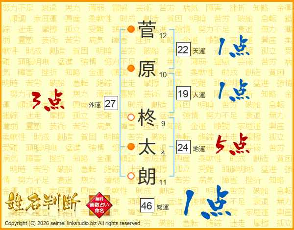 菅原柊太朗さんの総運は46画の1点!