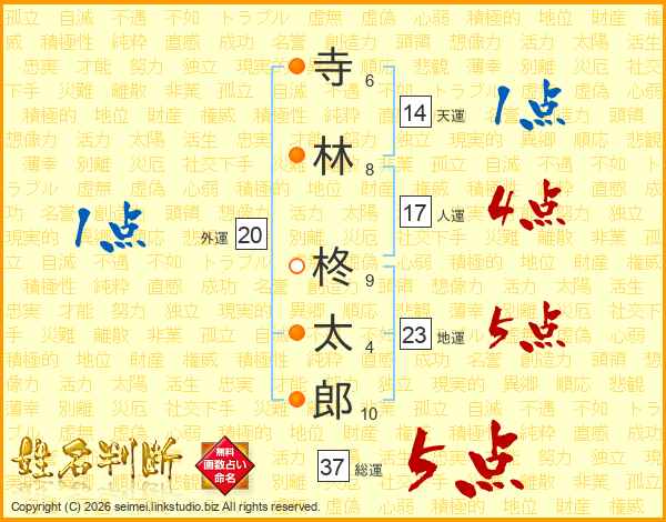 寺林柊太郎さんの総運は37画の5点!