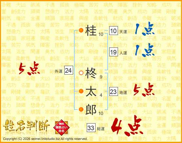 桂柊太郎さんの総運は33画の4点!
