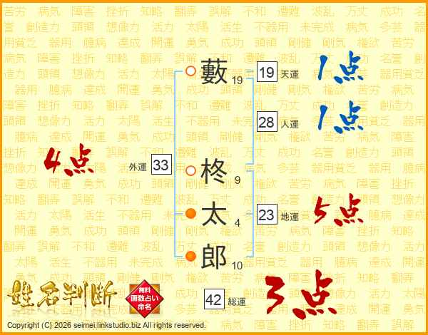 藪柊太郎さんの天運は19画の1点!
