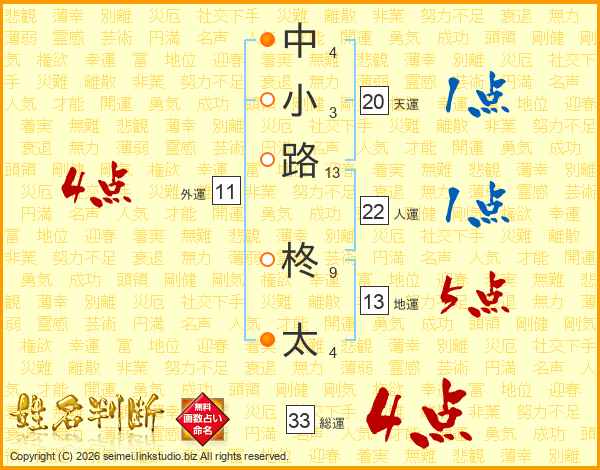 中小路柊太さんの総運は33画の4点!