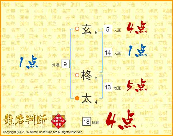 玄柊太さんの総運は18画の4点!