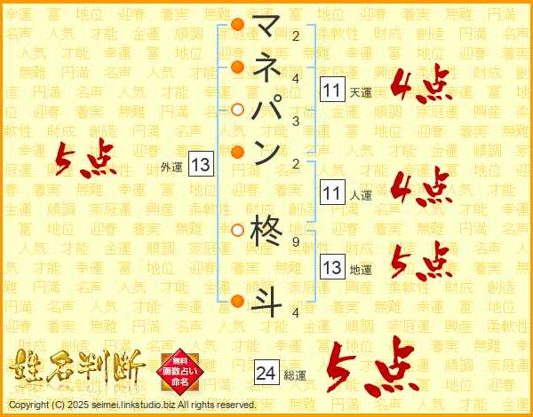 マネパン柊斗さんの外運は13画の5点!