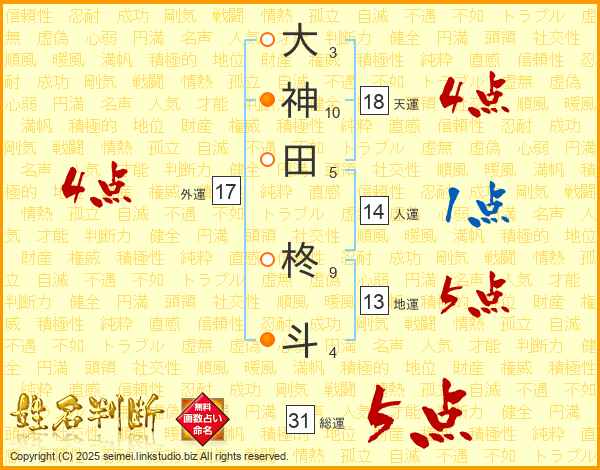 大神田柊斗さんの総運は31画の5点!