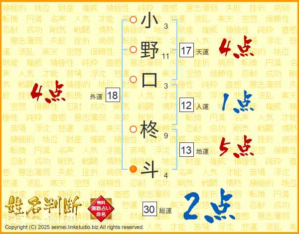 小野口柊斗さんの総運は30画の2点!