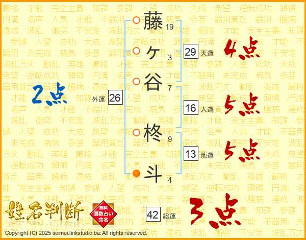 藤ヶ谷柊斗さんの総運は42画の3点!
