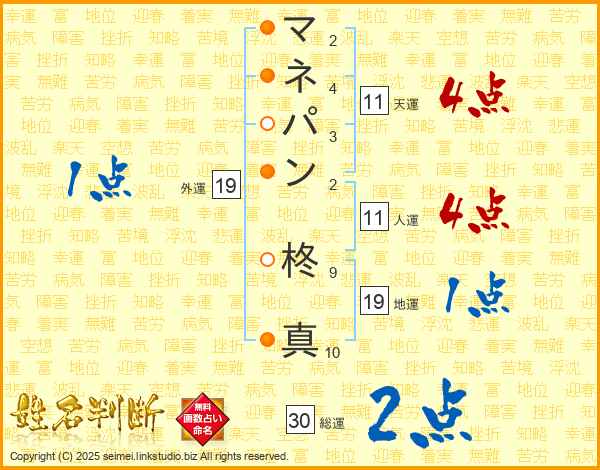マネパン柊真さんの地運は19画の1点!